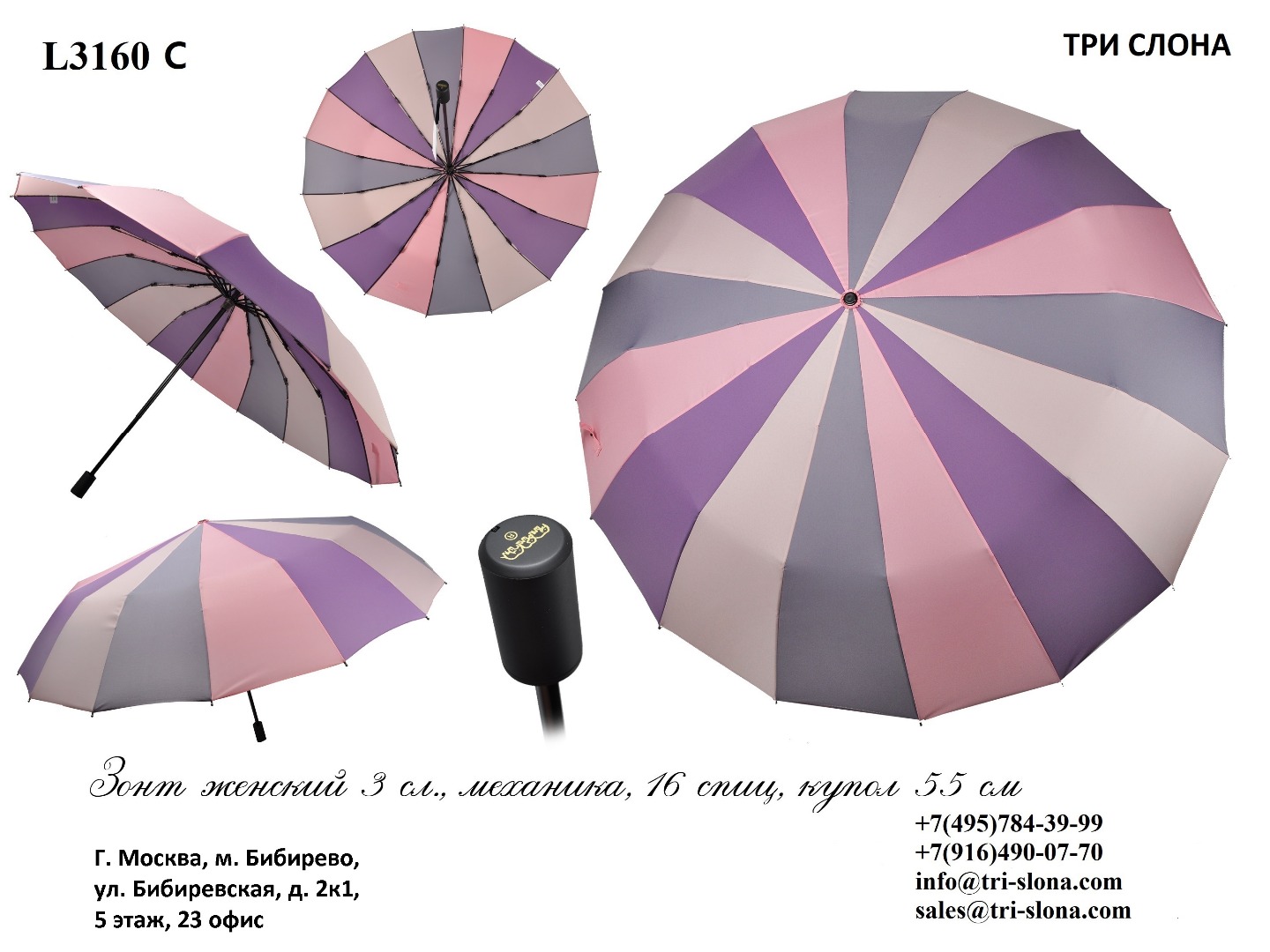 Зонт 3 сложения, Механика, женский, "ЭПОНЖ", 16 спиц, радиус купола - 55 см