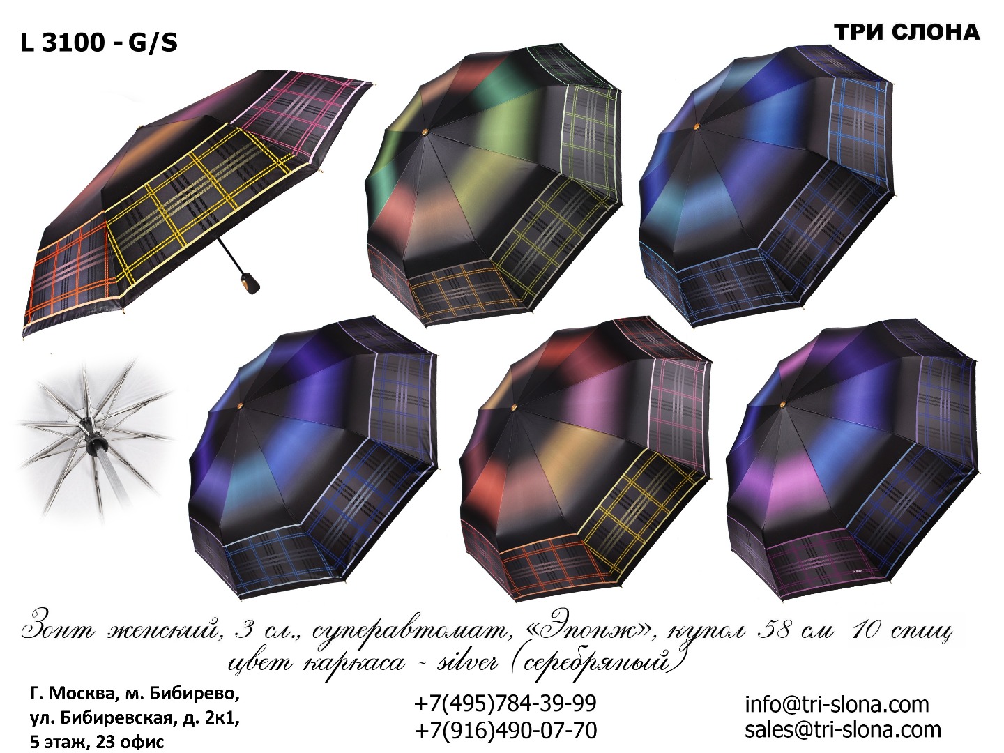 Актуальный каталог зонтов Три Слона можно скачать в разделе Каталог и на любой его странице