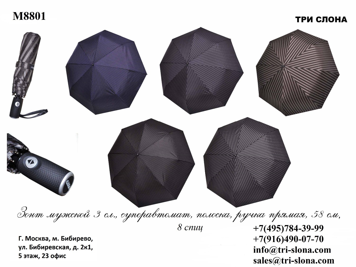 Актуальный каталог зонтов Три Слона можно скачать в разделе Каталог и на любой его странице