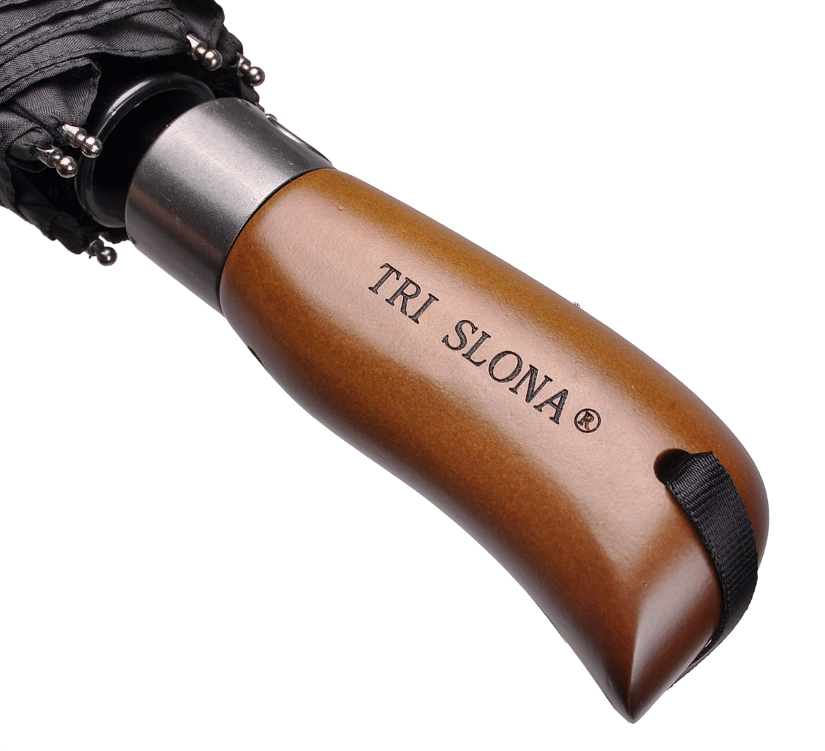 Зонт 3 сложения, Суперавтомат, однотонный, ручка прямая - дерево, 8 спиц, радиус купола - 70 смм