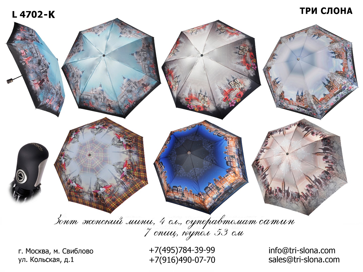 Актуальный каталог зонтов Три Слона можно скачать в разделе Каталог и на любой его странице