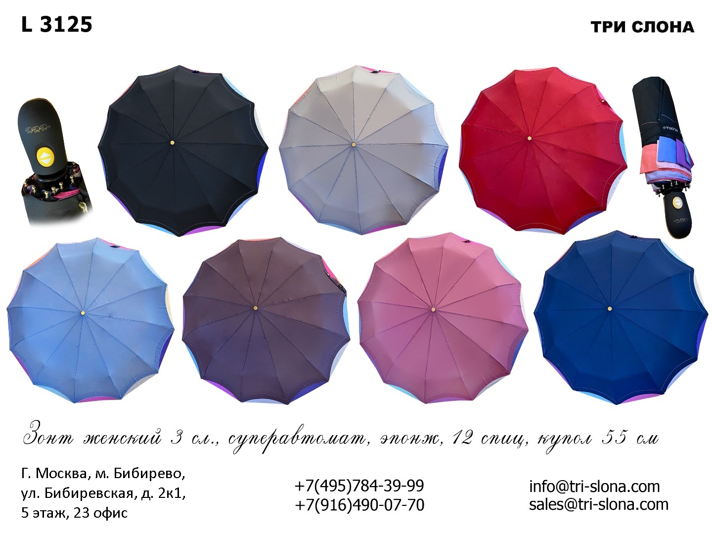 Актуальный каталог зонтов Три Слона можно скачать в разделе Каталог и на любой его странице