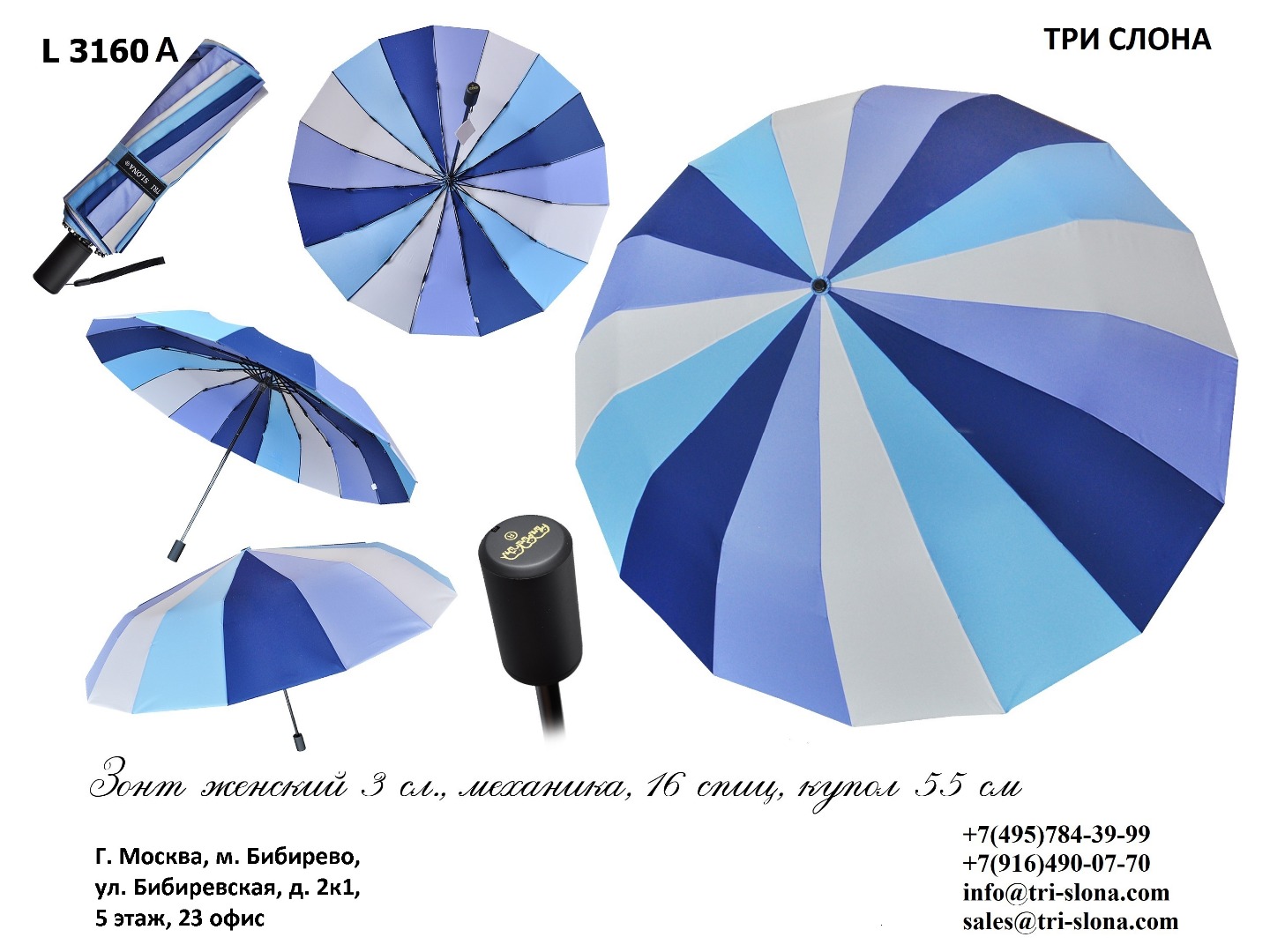 Зонт 3 сложения, Механика, женский, "ЭПОНЖ", 16 спиц, радиус купола - 55 см