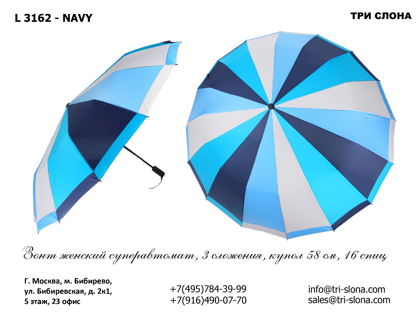 Зонт 3 сл., Суперавтомат, женский, "ЭПОНЖ", 16 спиц, радиус купола - 58 см