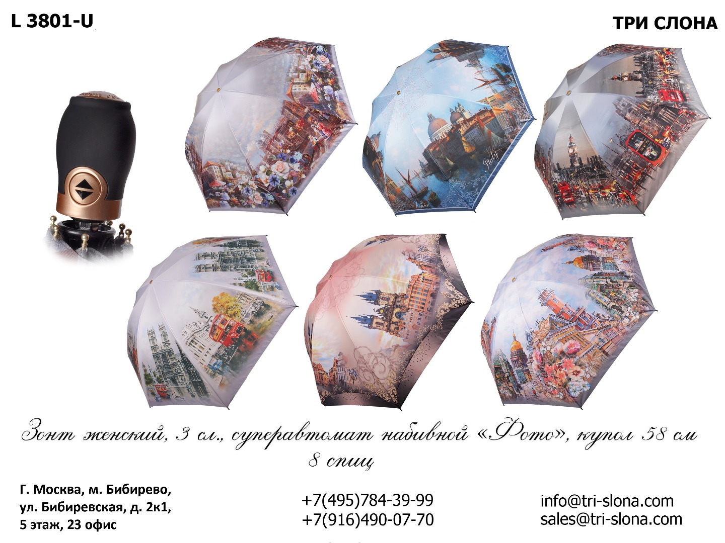 Актуальный каталог зонтов Три Слона можно скачать в разделе Каталог и на любой его странице