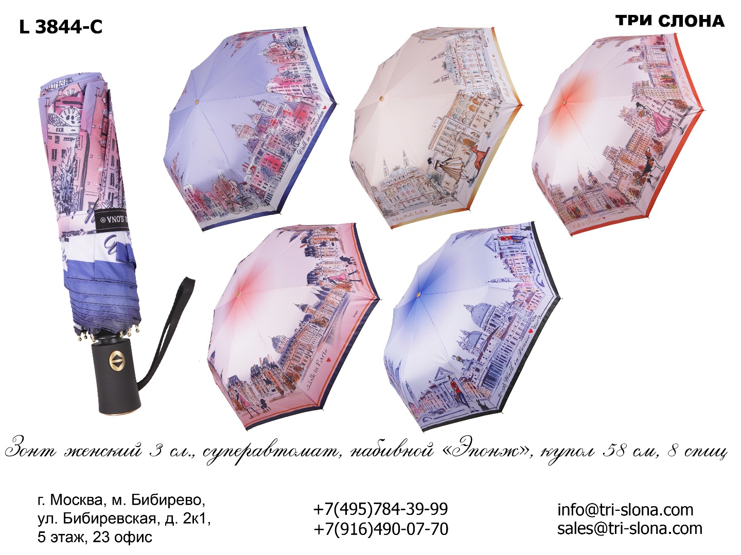 Зонт 3 сл., Суперавтомат, женский, набивной "ЭПОНЖ", 8 спиц, радиус купола - 58 см