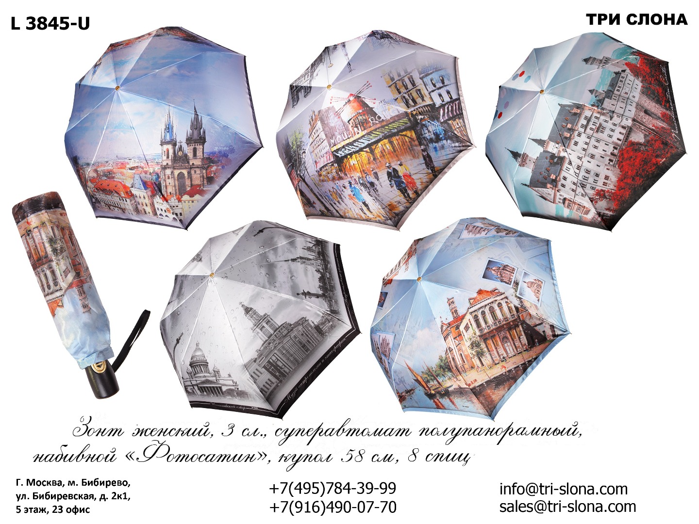 Зонт 3 сложения, Суперавтомат, женский, набивной полупанорамный "ФОТОСАТИН", 8 спиц, радиус купола - 58см