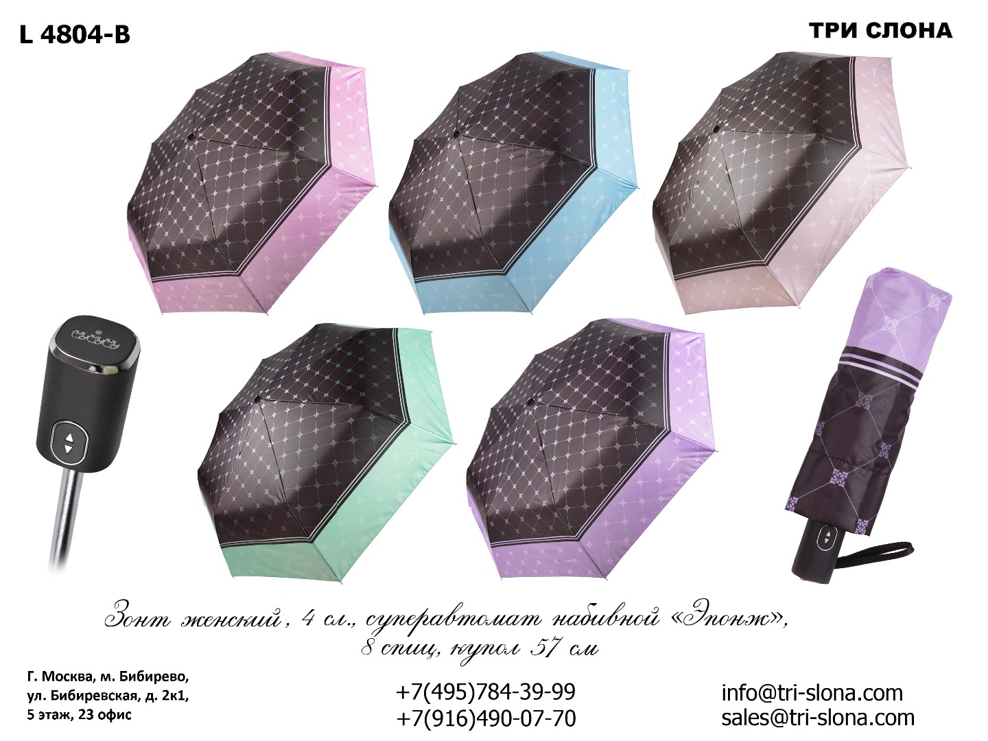 Актуальный каталог зонтов Три Слона можно скачать в разделе Каталог и на любой его странице